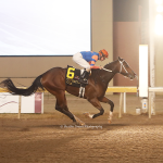Glee worked her half-mile in :48.50 handily. Glee was purchased by Mike Rutherford of Houston, Texas, for $60,000 from the Fasig-Tipton Fall Yearling Sale in October 2023. Glee’s lifetime record is 11 starts, three wins and three seconds for $175,584 in earnings.