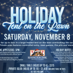 Table for up to four in a large heated tent on teh lawn overlooking the racetrack. Private area features controlled entry, lawn games, fire pits and more…