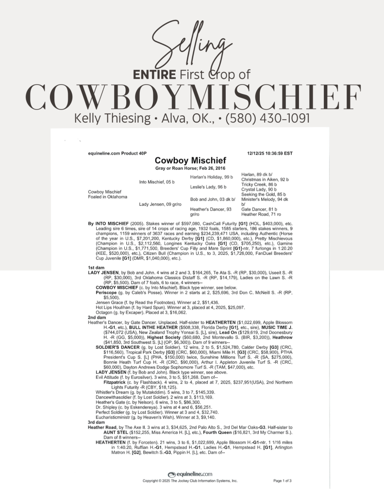 Cowboy Mischief Entire 1st Crop For Sale